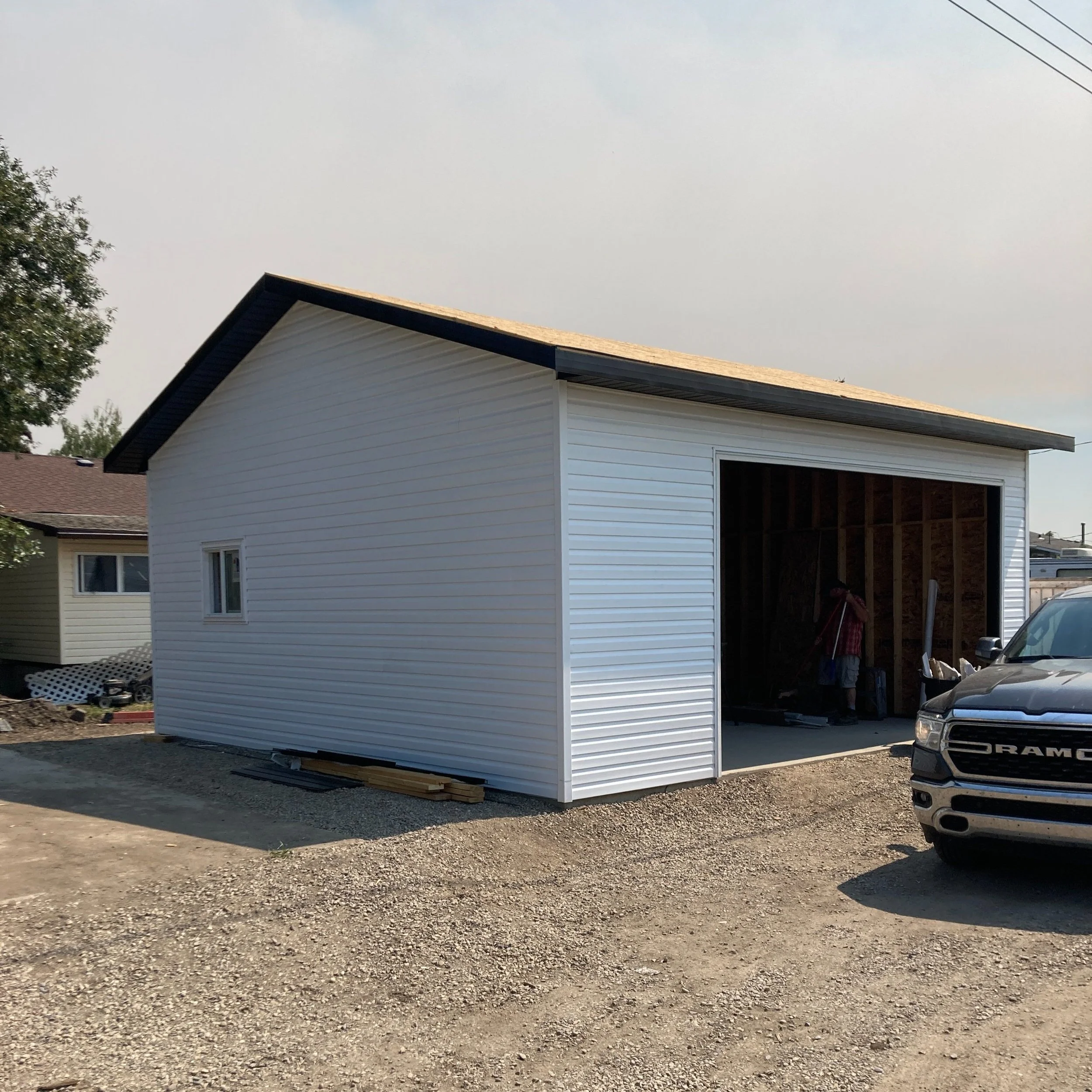 This project was done in conjunction with another builder in Carseland, AB. The client wanted an oversized detached garage with 2 vehicle doors. The project consisted of